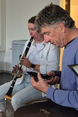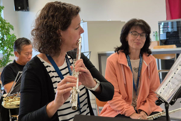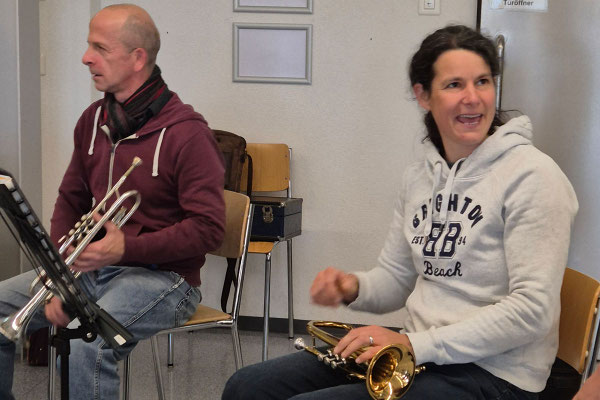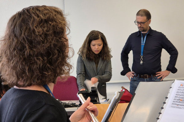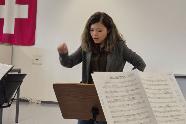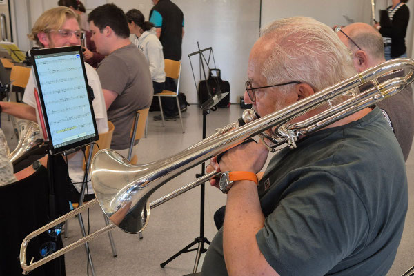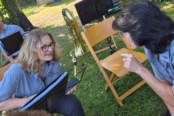 Beim Einspielen wird die Anspannung spürbar, die Konzentration steigt. Unser Konzertstück «Fate of the Gods» von Steve Reineke gibt dann nicht nur Christine Hühnerhaut, auch von unserer zukünftigen Dirigentin gibt's ein Daumenhoch. Wir sind gespannt auf die Bewertung!