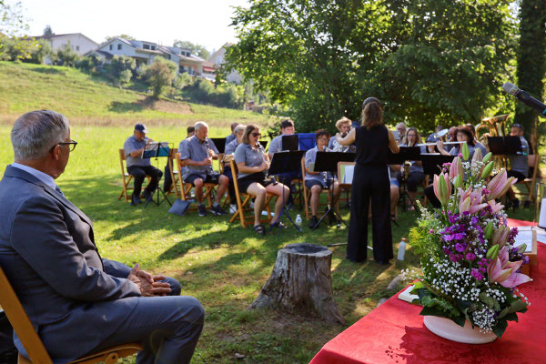 Am Sonntag, 31. August 2025, 10:15 Uhr begleiteten wir die Predigt am Südhangfest Kirchlindach: Bei Prachtssonntagswetter eröffneten wir den Gottesdienst mit der «Yorkshire Ballade». Danach nahm uns Pfarrer Graf auf seine spannende fünfwöchige Vespareise mit. Nach dem Gottesdienst gaben wir noch ein Ständli mit fünf Musikstücken.
