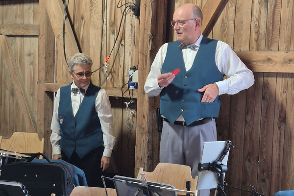 Die MBK war mit Freude dabei, vom Marsch Feuer und Flamme zu Fate of the Gods und Cinema Paradiso, vom Zündhölzli über O Vitinio bis zur Amboss-Polka als Zugabe, wo die Hämmer kraft- und taktvoll von Marianne geschlagen wurden. Der scheidende Dirigent Manuel zeigte Gefühle – und bestimmt wurde nach dem Konzert in der Bar nicht nur mit Mineralwasser gefeiert!